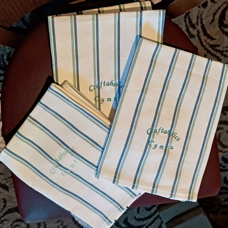 Tea Towels embroidered with 'Craftaholics Cymru'